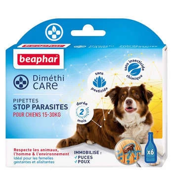 Repoussez les puces et les tiques indésirables avec ces pipettes Dimethicare. Votre chien de taille moyenne vous dira merci ! Boîte contenant 6 doses….