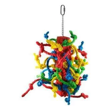Offrez à vos grandes perruches et perroquets ce jouet en bois composé de cordes colorées, idéal pour qu’ils puissent jouer et avoir une bonne hygiène. Dimensions : L 10 x l 10 x H 30 cm…