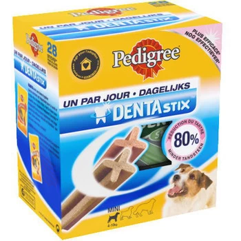 Une barre à mâcher Dentastix par jour et c’est le bonheur assuré pour votre chien ! Il adore mastiquer et se faire les dents. Boîte de 440g, 28 sticks….